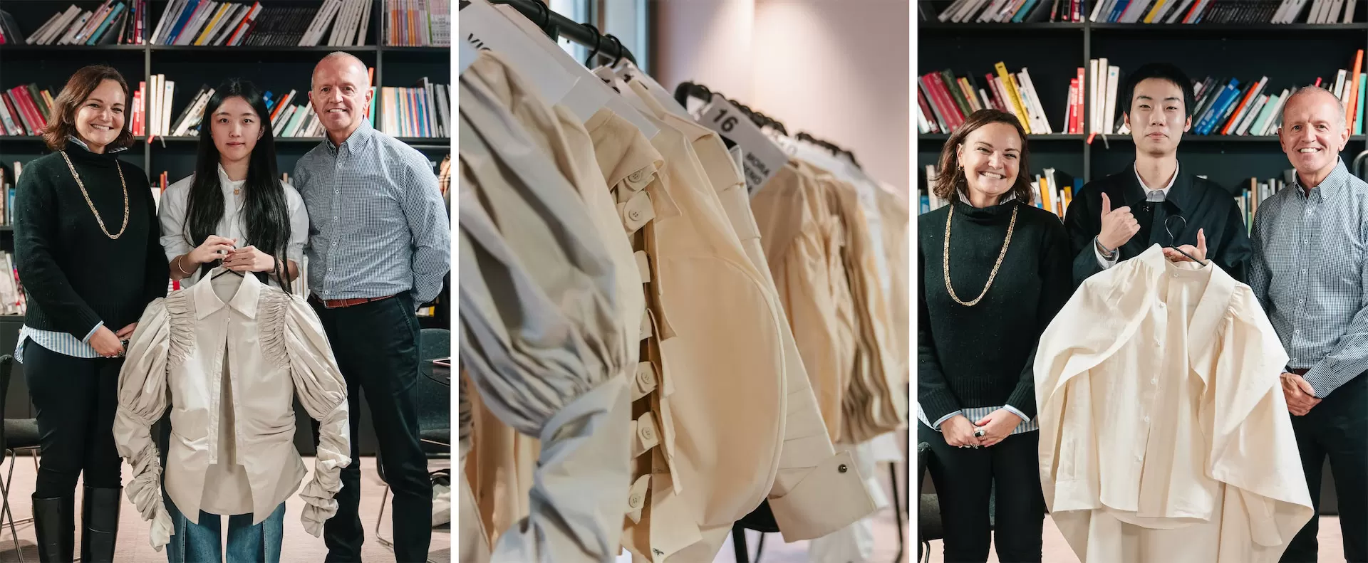 По итогам работы группа экспертов выбрала лучший проект, который был представлен с 4 по 6 февраля 2025 года на стенде Chargeurs PCC во время 40-го выпуска Milano Unica. В центре внимания оказалась работа студентки Сары Пэн, чей дизайн исследует тему миграции. Ее рубашка, приталенная на талии и с измененной конструкцией спины, напоминающей позвоночник, символизирует физическую и эмоциональную тяжесть миграционного пути. Рукава-баллоны, плотно прилегающие к низу, добавляют ощущение напряжения и движения.